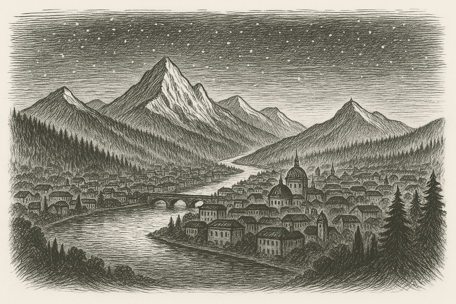 Words etched in shadow, rising like memory into the night. The mountains hold their breath. The stars bear witness