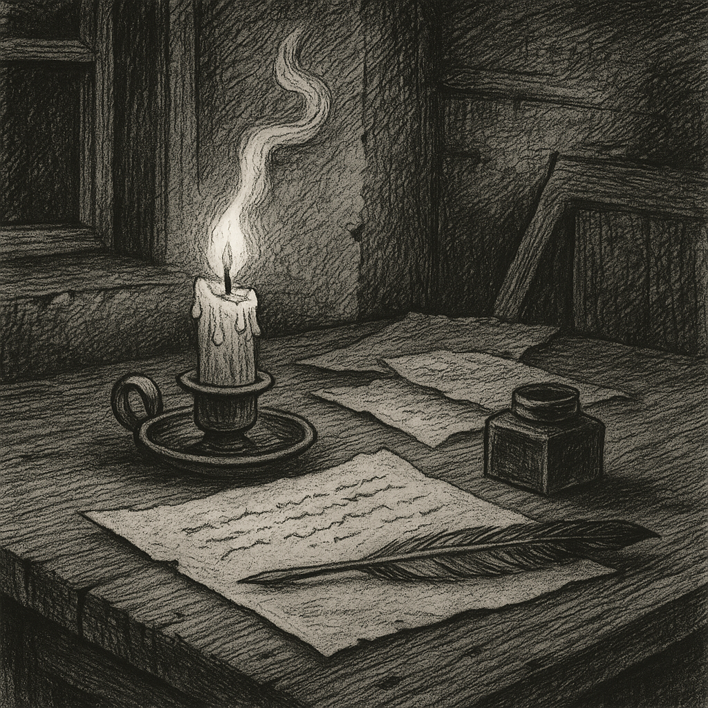 Ink still damp. Smoke still curling. Whatever was written here lingers — half spell, half sorrow.